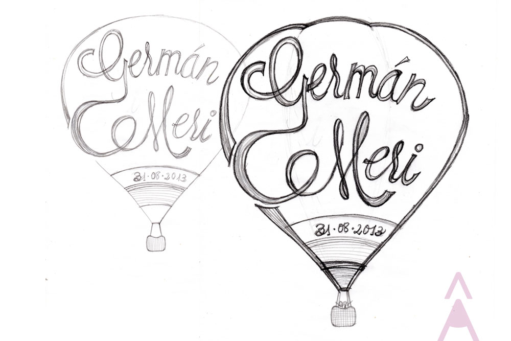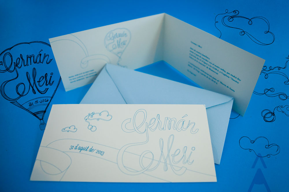 Disseny gràfic, il·lustracio i estudi de lettering per a invitacions de boda. 2013.