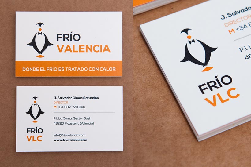 Estudi de nom, conceptualització i disseny d’identitat corporativa. Frío Valencia, és una nau frigorífica al terme de Picassent que compta amb més de 16.500 espais frigorífics. Necessitaven un estudi de nom i una marca que trasmetera el seus serveis i incorporat el claim “Dónde el frío es tratado con calor” una frase que transmet el seu esperit i que tenien registrada feia anys enrere.