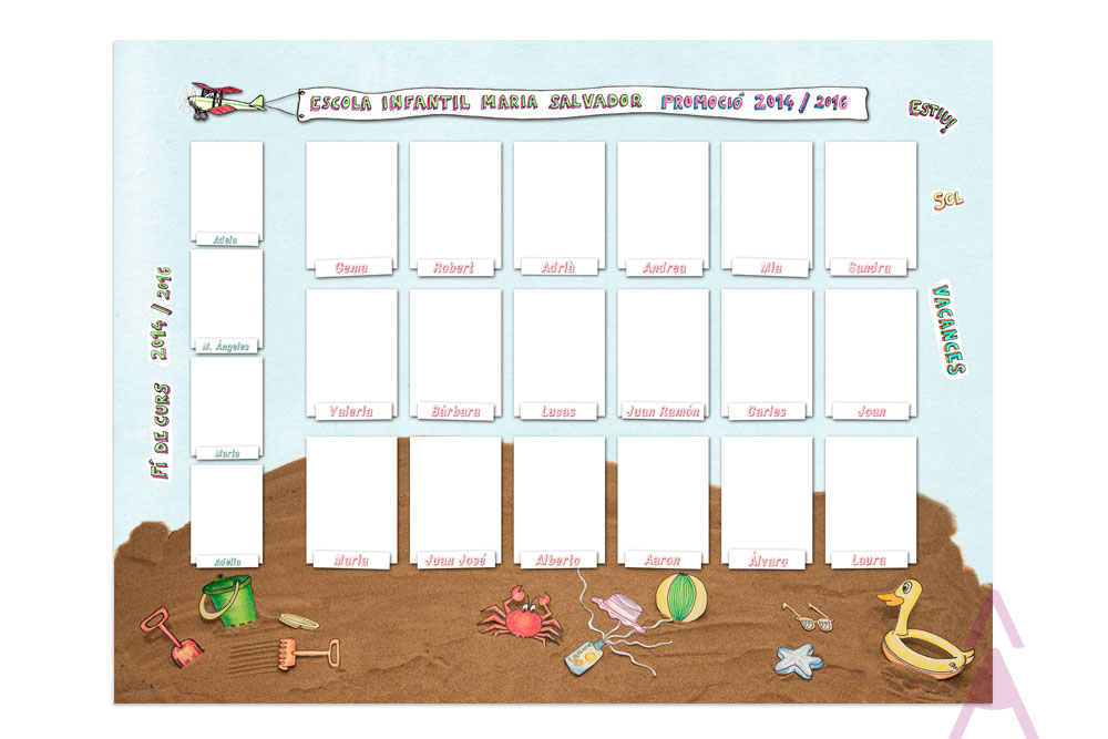 Il·lustracions i color a mà, fotografia i disseny gràfic per a les orles 2014/2016 de l’Escola Infantil maria Salvador de Real.
